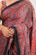 Fabric - Modal Silk (Ajrakh Hand block printed Modal Silk Saree)